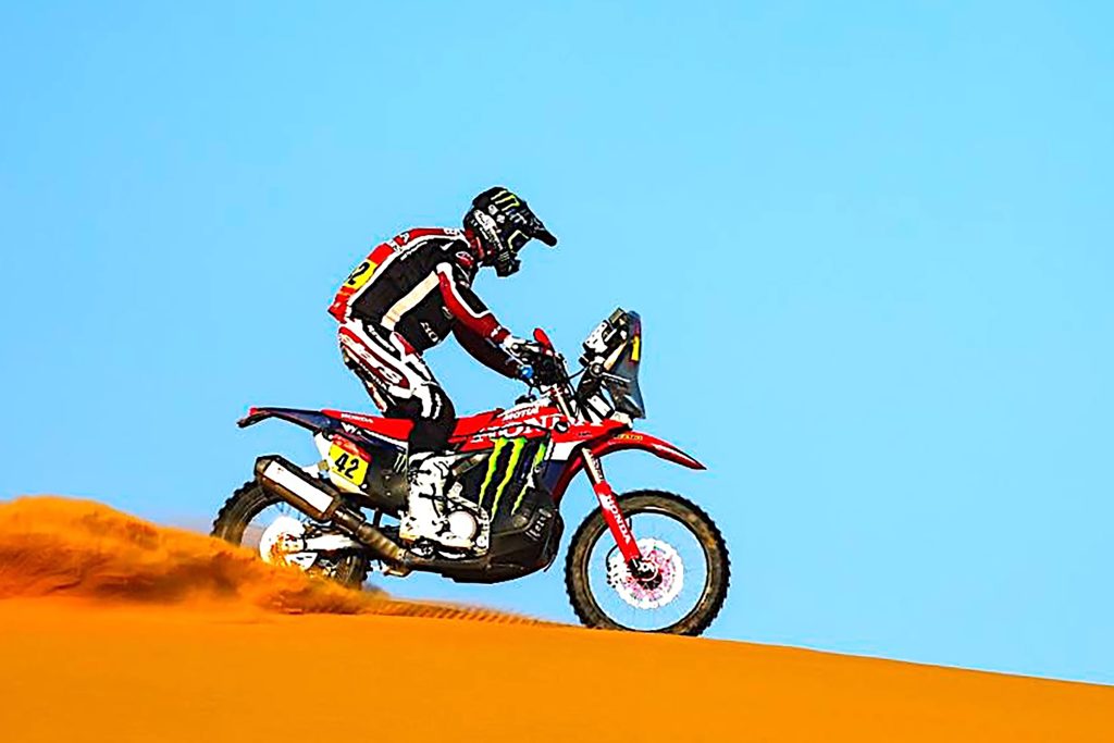 A dune-rich 371 km run, Stage 10 headed from the second desert no-service Marathon bivouac to Bisha. Third overall, Benavides set the opening checkpoint ablaze as he led Honda men, Californian Ricky Brabec and Frenchman Adrien van Beveren, Rally 2 leader Michael Docherty, Chilean Ignacio Cornejo’s Hero, and overall leader Daniel Sanders KTM.