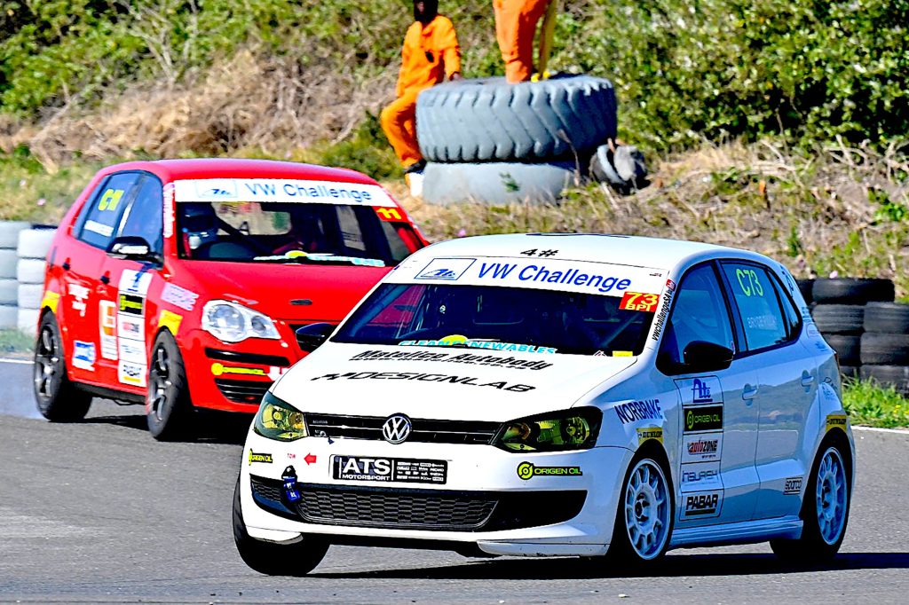 The ATE VW Challenge table is tighter than ever with two points between the top three. Class C young gun Adriaan de Beer leads class rival Bryce Pillay by just a point, but B leader Stuart Mack was also beaten for the first time, which makes it three cars split by two points. Francis Aldrich stole his first Class B win last time out and also watch for a Class A return to strength at Red Star. Young gun Jayden Goosen will have champion Wayne Masters, Elna Croeser and the returning Dewald Theron to deal with in Delmas.