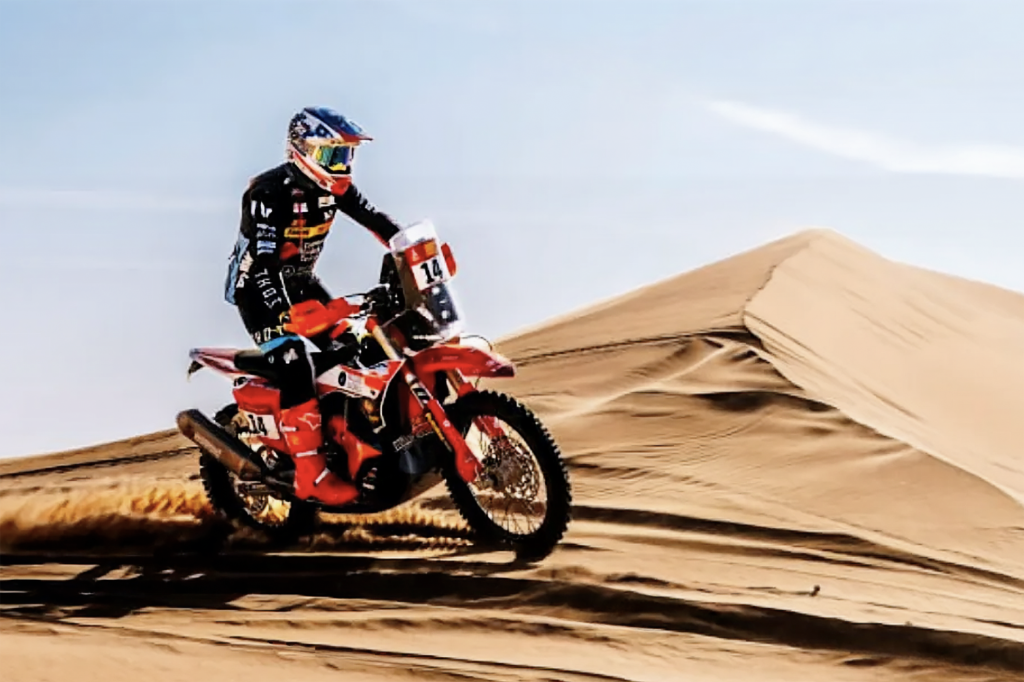 Sunday’s 877 km trek included 459 competitive kilometres to Wadi ad-Dawasir in the Arabian Desert following the rest day on Sunday. With mainly fast and sandy tracks and a third of the distance over dunes, a varied day faced the field as Honda Factory CRF450 duo Californian Ricky Brabec and Spaniard Tosha Schareina and defending champion, Sanders’ KTM set off at the head of the remaining 99 of 115 Bike starters.