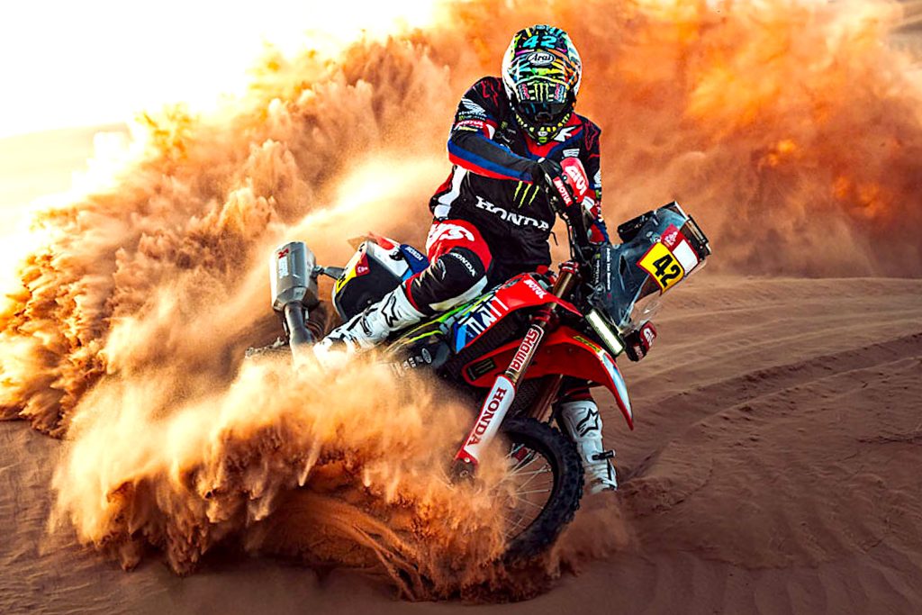 Honda is ready to paint Dakar red with Americans Ricky Brabec and Skyler Howes, Frenchman Adrien van Beveren and Spanish rider Tosha Schareina on four factory Monster CRF450s. And adding a touch of variety are dark horses American Mason Klein and Czech Martin Michek on a pair of new Chinese Hoto Factory 450 Rallys.