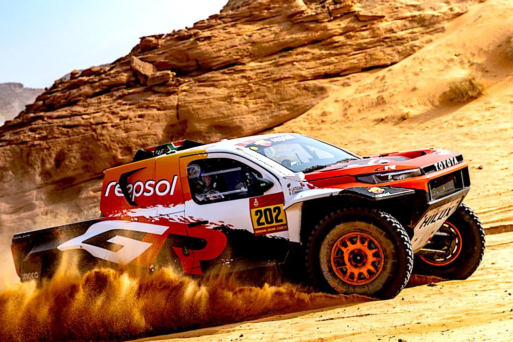 All of which meant that best of Wednesday’s top ten, Frenchmen Sebastien Loeb and Eduard Boulanger went from fifth to eleventh on Thursday. Teammates Nasser Al-Attiyah and Fabian Lurquin’s Dacia Sandrider managed 14th from second, Wednesday winners South Africans Henk Lategan and Brett Cummings’ Overdrive Hilux haemorrhaged twelve minutes opening the road en route to 16th., and third men Mical Goczal and Diego Ortega’s Hilux only managed 22nd .
