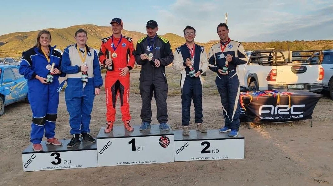 The Daniel Pienaar Technical High School team, supported by Motorsport South Africa, fielded their VW 1.2 TSI Polo, driven by scholar Leander Koekemoer and navigated by teacher Miss Kaylin Kapp. The young crew impressed throughout the challenging rally — surviving the rough opening stages that saw multiple teams retire. Despite sustaining front bumper damage, the Daniel Pienaar Polo held steady to reach the finish line, earning a well-deserved third place podium in the ARC 5 class.
