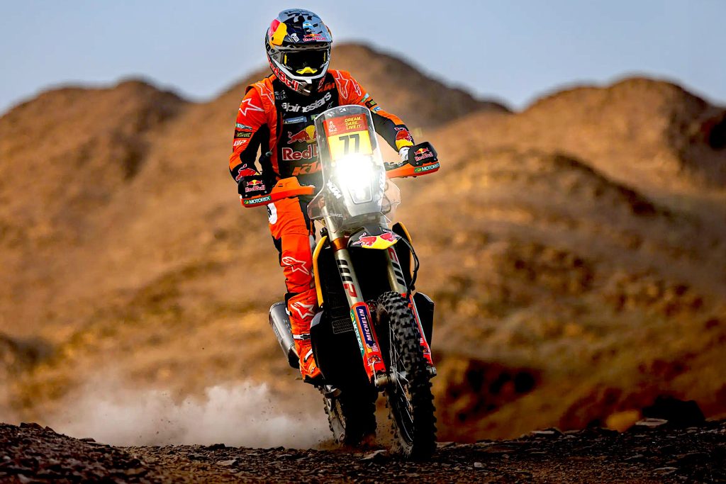 That sees Sanders back into a two-minute overall lead for KTM from Honda men Schareina and Brabec, Cornejo’s Hero and Honda duo Skyler Howes and van Beveren. Brad Cox is up to eighth ahead of Rally 2 leaders Campbell and Dabrowski. Ross Branch has slipped to 10th, Edgar Canet provisionally 33rd. Benjamin Melot leads the no service original class on his KTM after Josep Pedrero won another stage on his Husqvarna.