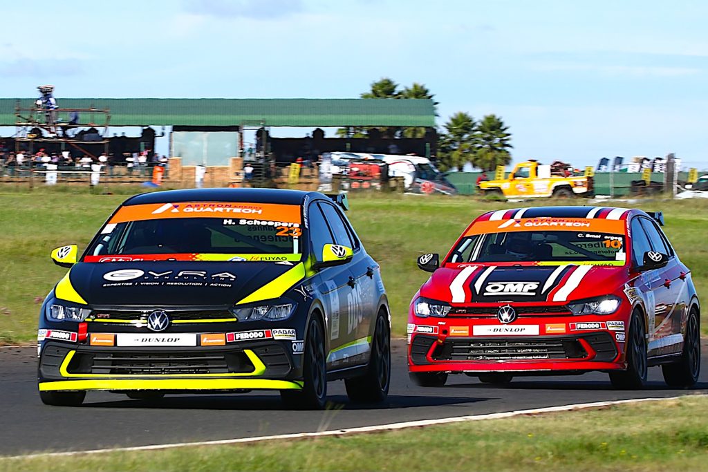 Racing on Dunlop tyres as ever, Charl Smalberger was delighted to claim the Astron Energy Polo Cup Dunlop Pole Position Award. Hannes Scheepers however got the drop in both races to make it four wins out of four starts in 2026. Smalberger kept Hannes under pressure all the way, Roshaan Goodman was third in race 1 from Mauro Da Luz and Shiren Rajpaul and from and Jayden Goosen and Mauro da Luz in heat 2. Wayne Masters won both Polo Masters races from dad Derick Smalberger and John Kruger. That leaves unbeaten Scheepers in a healthy Cup title lead over Goodman, Smalberger and Da Luz, and Masters leading Derik Smalberger and Kruger in Masters.