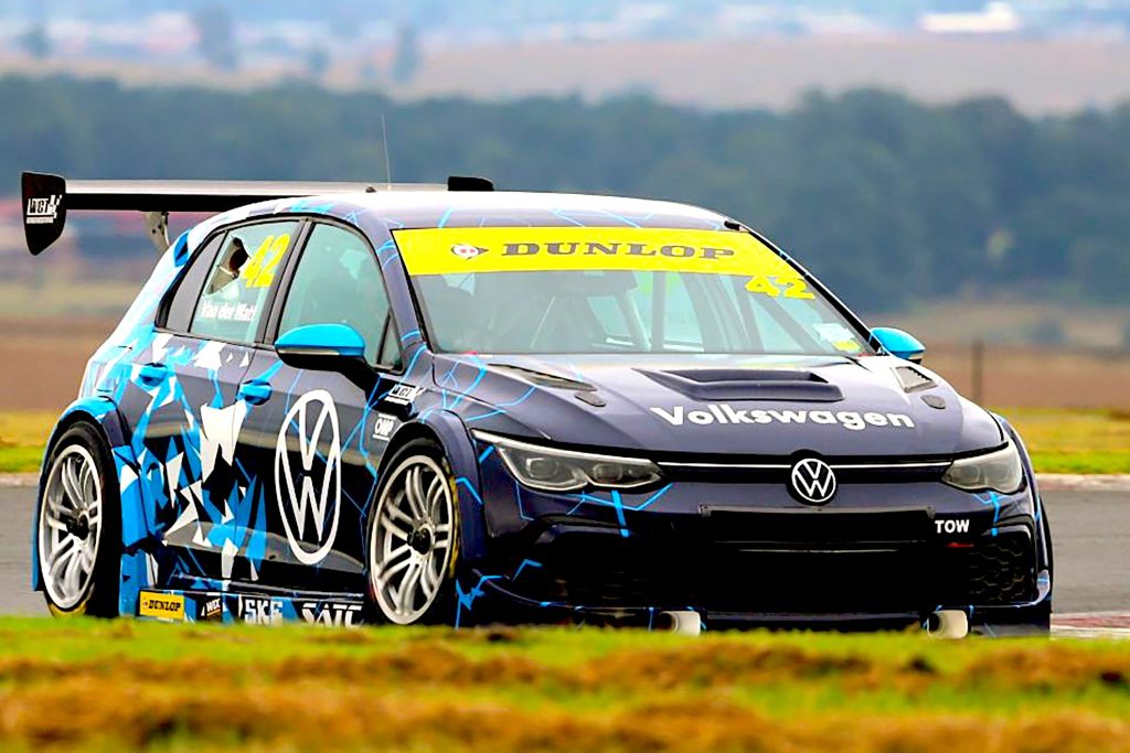 The weekend kicked off with Julian van der Watt and his Volkswagen Golf GTI scooping the Dunlop-shod South African Touring Cars Dunlop Pole Position Award before making off to an easy opening race win. There was drama when Robert Wolk and KC Ensor-Smith’s Golfs and Keegan Campos’ BMW Golf came together in turn 1. Wolk stopped, Campos pitted and Ensor-Smith chased van der Watt and Jason Coetzee’s Toyota Corolla home in third. Campos then took advantage of his reverse grid second race pole position to win from Ensor-Smith and day winner van der Watt. That also sees van der Watt to the top of the championship log closely followed by Ensor-Smith and Coetzee.