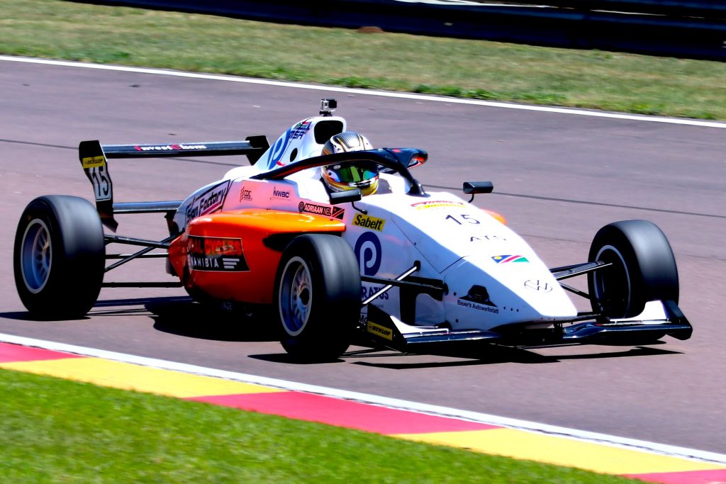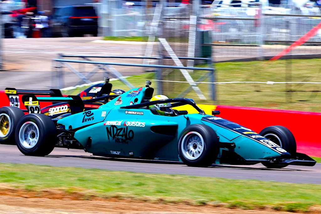 There was drama on opening lap of the first of three races as Nel led the way. Ensor-Smith lost his nose against the back of Bezuidenhout’s car and was forced to retire. Bezuidenhout escaped damage to chase Nel home in second and move into a three-point championship lead over Ensor-Smith for the first time this season. Behind them, Karabo Malemela overcame Liam Polome and Kent Swartz for third ahead of the recovered Renzo Ribeiro, who emerged on top of an entertaining fight with Nicholas van Weely and Jorden Moodley, Khoza, Spies, Gerasi and Mohlahlo.