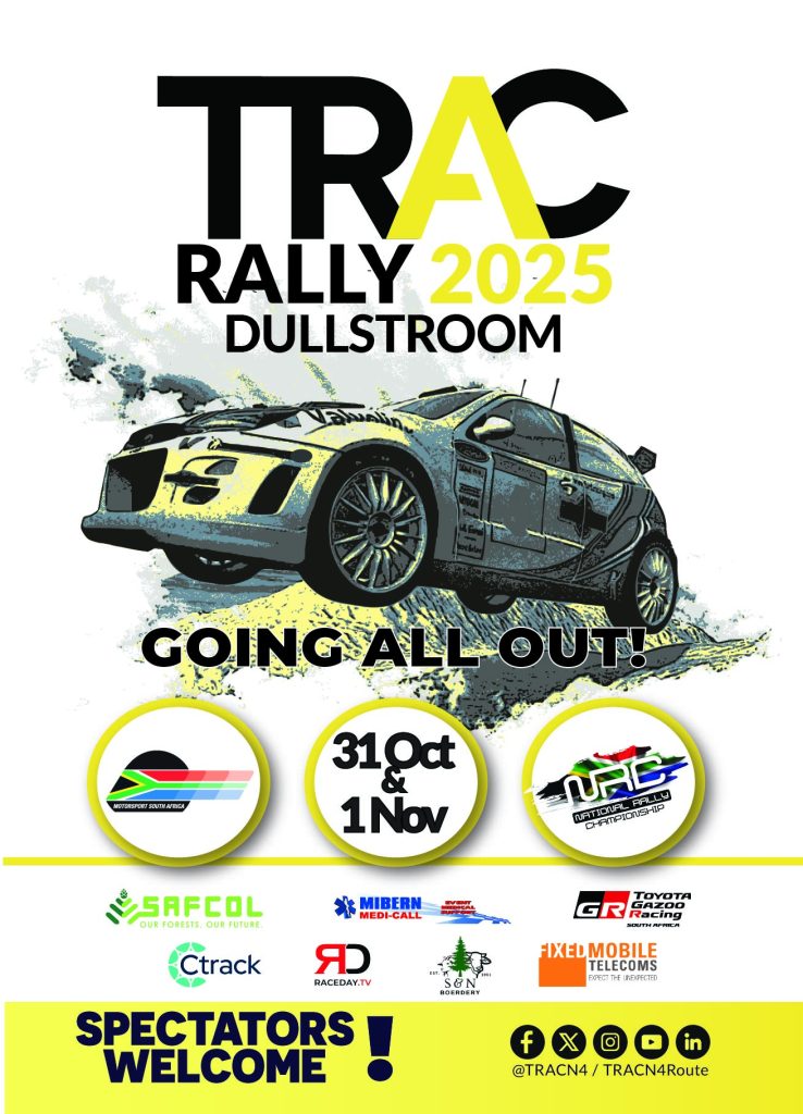 Follow @TRACN4 or @SARallychamps on social media, visit www.tracn4.co.za, or email the rally secretary at irene.myburgh@outlook.com for more information.