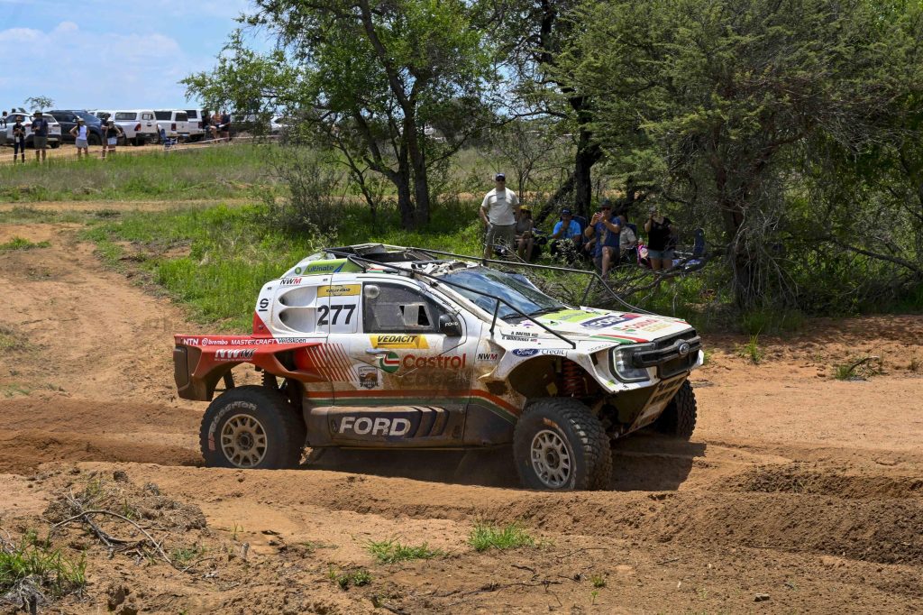 Saturday’s rally-raid brought a sudden shift in fortunes for the leading Ford team. After successfully overtaking the Toyota and setting the pace, their charge was disrupted by an unfortunate collision with a Kudu. While the Kudu was confirmed to be unharmed and safely departed the area, the impact severely damaged the Ford’s windscreen. This necessitated an unscheduled stop to remove the windscreen, which, combined with the subsequent reduction in engine cooling due to altered airflow, cost the team crucial minutes. Even so, they fought to the finish and claimed sixth overall in a display of sheer grit when everything seemed to be going against them.