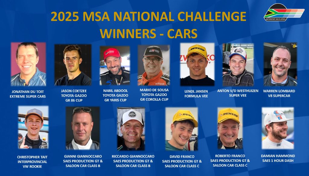 Motorsport South Africa proudly announces the 2025 MSA Regional Champions, Regional Colours recipients, and the dedicated Regional Colours Administrators who helped make another remarkable season possible.