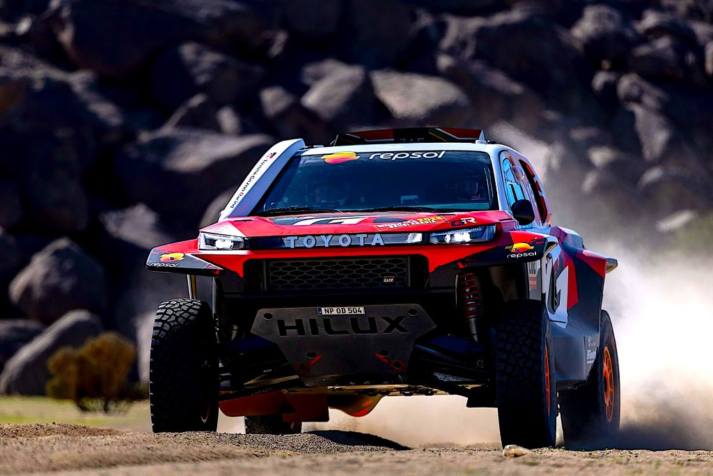 Dakar’s fourth day of Car racing once again brought extreme fluctuations in fortunes and results as South African Gazoo Toyota crew Henk Lategan and Brett Cummings dominated. The Overdrive Hilux duo jumped from eleventh overnight to lead overall on Wednesday’s tough 452 km haul to the no-service overnight bivouac on a separate route to the motorcycles.