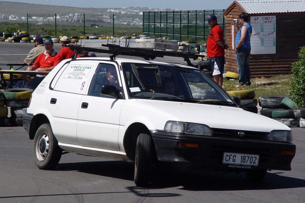 In 1999 the Witzenberg Motorklub Gymkhana Championship started with the 1st Subaru Tygerberg Club Mykonos Gymkhana and Marius became the “sound” of WBMK Gymkhana events with his Unicom Services Team and then he would share Commentary duties with the likes of Pieter “Swannie” Swanepoel and Neel Rabe. There were the occasional appearances of the Unicom Services Toyota Caddy 1.3 complete with ladder mounted on the roof!