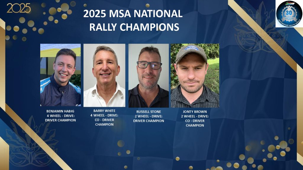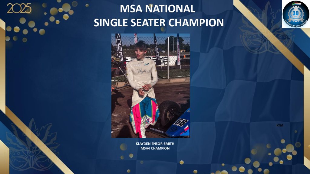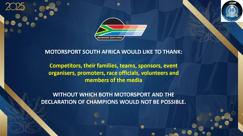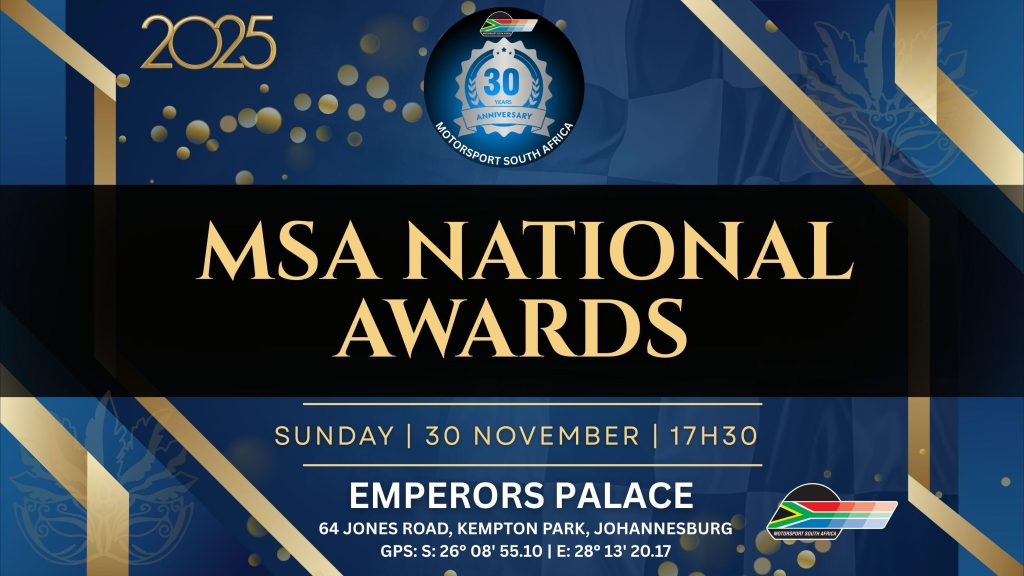 Motorsport South Africa’s annual National Awards returned to Emperors Palace on Sunday evening, filling the Senate Room with champions, long-time contributors, families, and supporters who came together to celebrate another remarkable year in the sport. This year’s event carried special significance as MSA proudly celebrated its 30th anniversary, highlighted by a commemorative video and reflections on the organisation.