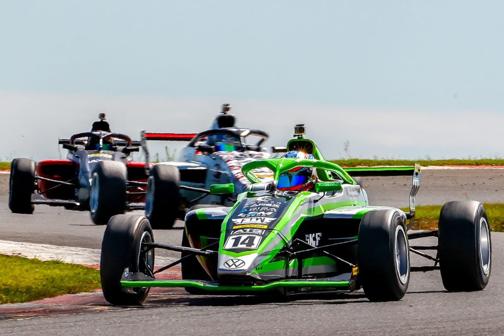 Former British Formula 4 ace Aqil Alibhai turned the Investchem MSA4 chase on its head. Pole man Shrien Naidoo bogged at the start to leave log leader Mikel Bezuidenhout to second from Karabo Malemela, Guido Bidoli and Naidoo, who fought back to fifth. Alibhai beat Naidoo to turn 1 again in race 2 before Naidoo clashed with Bezuidenhout, who held on for second. Malemela was third from Bidoli and Kent Swartz, as Naidoo recovered to seventh. Ian Schofield meantime did the Formula Ford Kent class double from Alex Vos and Nicholas van Weely.