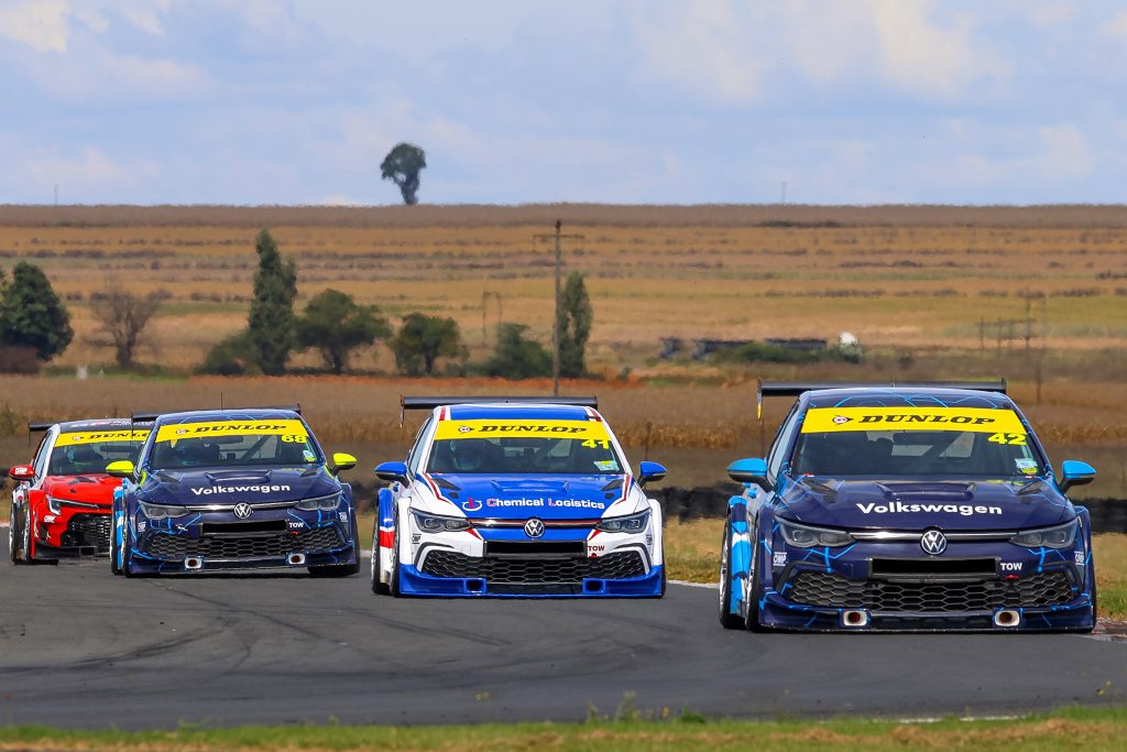 Pole man Julian van der Watt and his Volkswagen Golf GTI made off to an easy opening South African Touring Cars opening race win after returning duo, Robert Wolk’s Golf GTI and Keegan Campos’ BMW 128iS, and KC Ensor-Smith’s Golf collided in the first turn. Wolk stopped, Campos pitted and Ensor-Smith chased Jason Coetzee’s second placed Toyota Corolla all the way to the flag. Campos then took advantage of his reverse grid second race pole position to win from Ensor-Smith and day winner van der Watt.