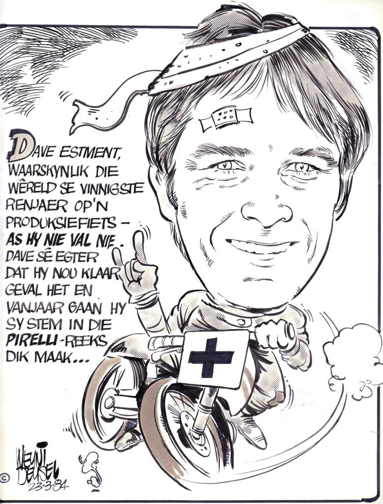 A fearless competitor, Dave raced professionally from 1979 to 1985, representing South Africa and competing in the 250cc class at the South African Grand Prix. In 1985 at Kyalami he brought a Honda RS250 home in 23rd, a testament to his grit and pace.