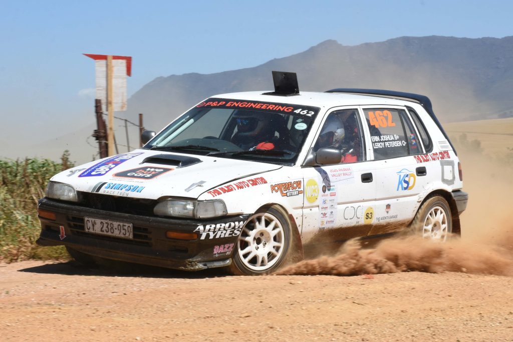 Erin Joshua en Leroy Petersen het oudergewoonte so hard moontlik gery om die sewende plek in te neem met hul 462 CCMCC WC3 Toyota Tazz 1.6. Faizel Davids en Terry Croy het ook hul terugkeer gemaak na ‘n lang afwesigheid en hoewel hul 422 CCMCC WC3 Toyota Corolla RXi 1.6 duidelike tekens gedra het van kontak met ‘n hek onderweg na agtste posisie was hul bloot tevrede om ‘n positiewe resultaat te behaal.