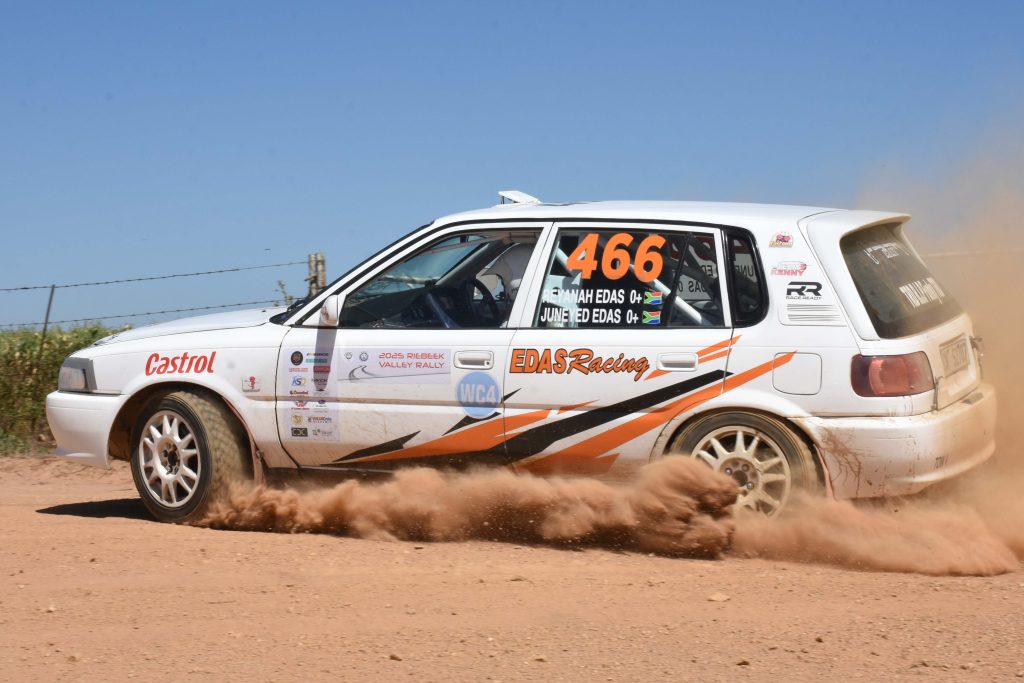 Malmesbury broer en suster, Juneyed en Reyanah Edas, het so goed vertoon dat hul klassifikasie in WC4 werklik in twyfel getrek kon word, en hul het uiteindelik slegs vyf sekondes na die Escort geeindig met hul 466 CCMCC WC4 Toyota Tazz 1.6. Veteraan tydrenner, Clinton Sassman, het ‘n welkome terugkeer tot die sport gemaak om sy 56ste verjaardag te vier met ‘n goeie sesde posisie algeheel in die 427 CCMCC WC2 Howard Centre Motors Workshop BMW E36 330i. Matthew Neethling die man wat die selfmoord stiplek gevul het op hierdie unieke geleentheid. Hopenlik het Clinton dit soveel geniet dat hy 2026 sy voltydse terugkeer kan maak.