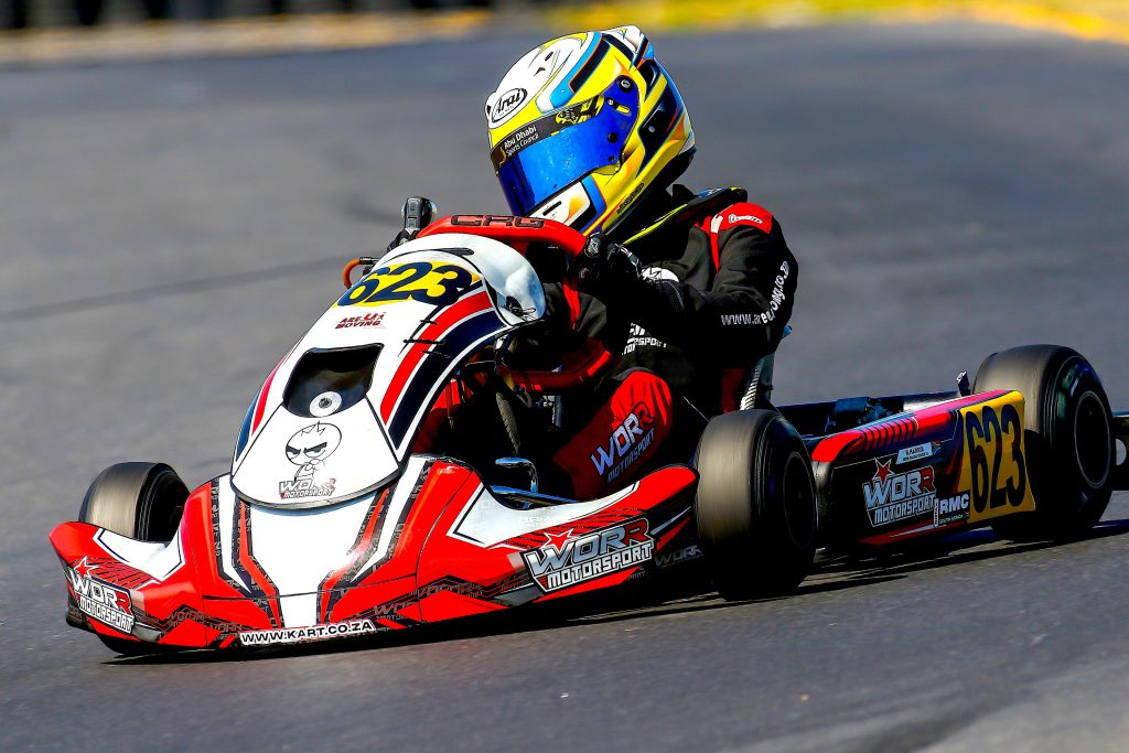 Tristan du Plessis benefited the on form Emma Dowling, suffering a tough final heat to beat her to overall top chain drive 22 kW Rotax Senior Max class honours on an 18-kart grid on the day. Dowling ended second with Eastern Province visitor Caleb Moss a very close third from Spice Mailula, Georgia Lenaerts and Kian Spies, while Tshepang Shisinwana, Tyla Scrimgeour, Ayden Kiem and Anele Nzimande closed off the top ten.