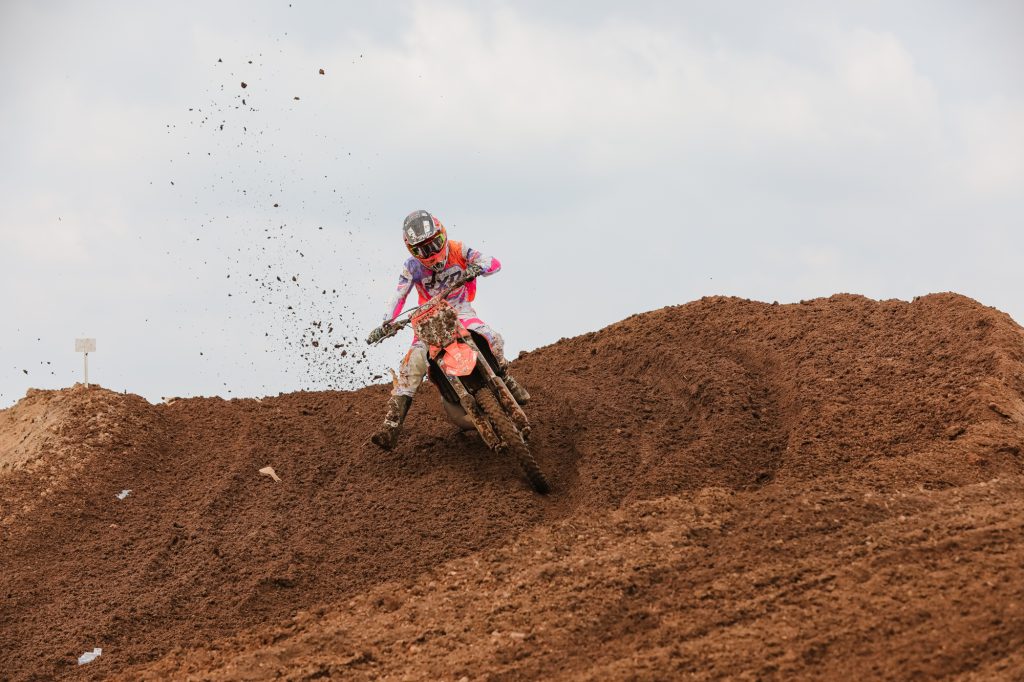 The gates opened early as teams and riders rolled in, setting up their rigs and preparing their machines for what promised to be an unforgettable day. The morning began cool, with overnight rain leaving the circuit soaked and heavy. But if there’s one thing motocross riders aren’t afraid of, it’s a bit of mud. Practice sessions kicked off on a very wet track, and competitors geared up for a slippery, technical start to the day.