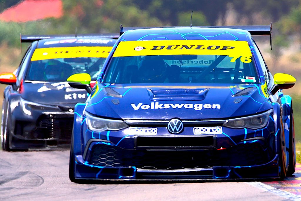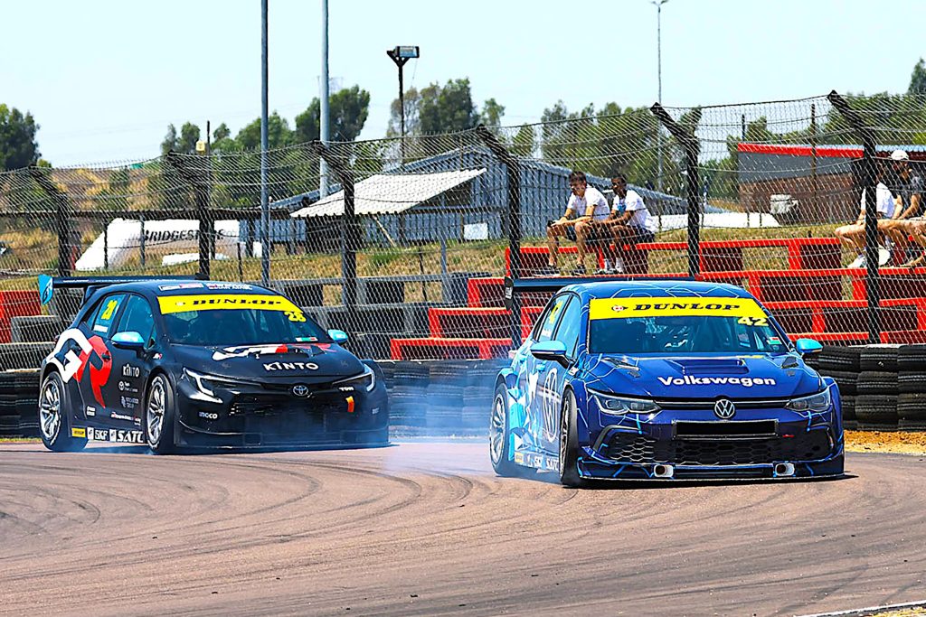 Keegan Campos started the weekend on the front foot as he put his Campos Transport Chemical Logistics FAST BMW 128tc on pole position, two tenths of a second clear of champion elect Michael van Rooyen’s Gazoo Toyota Corolla TC. Second in the chase, Jagger Robertson lined up third in his Chemical Logistics WEC Volkswagen Golf GTI TC alongside Nathi Msimanga’s Gazoo Corolla, Julian van der Watt’s Chemical Logistics Golf GTI, with Sa’aad Variawa’s Gazoo Corolla and Andrew Schofield in his Fly Safair Chemical Logistics BMW next up.