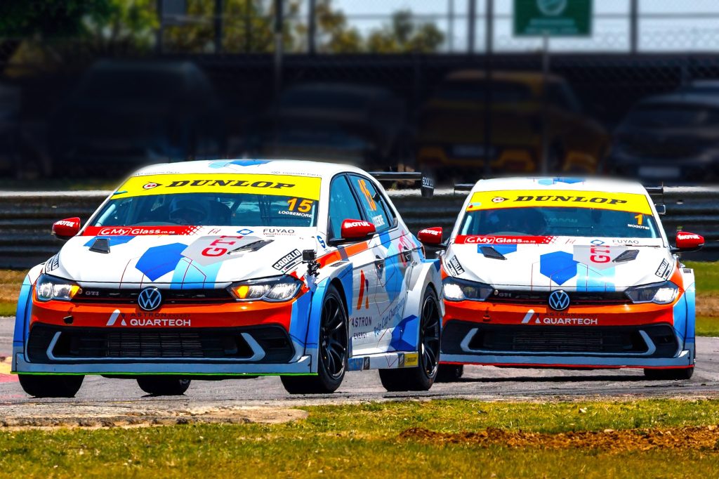 SupaPolos blocked out the top seven places on the SATC SupaCup grid. Volkswagen Motorsport teammates, Genuine parts man Jonathan Mogotsi and Jason Loosemore’s Astron Energy car closed off the front row from returning former champion Leyton Fourie’s Express Hire car. Nicolaos Vostanis’ Campos Transport machine followed from Niko Zafiris’ AZNetworks entry, Graphix Design lad David Franco and newly crowned champion Tate Bishop’s Angri car.