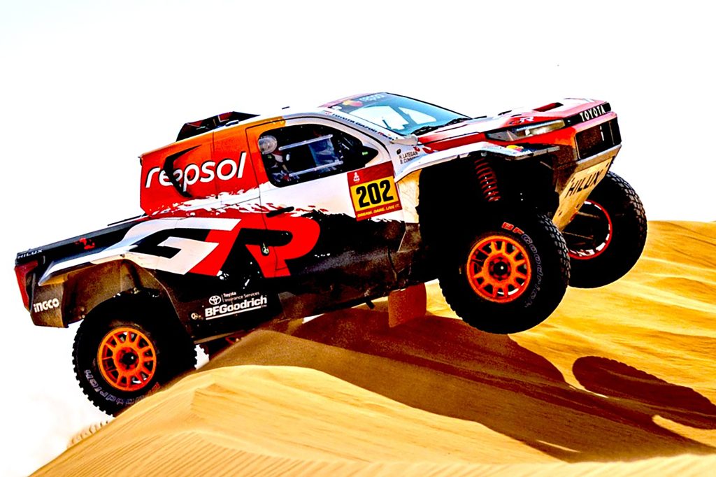 The rival SVR Hilux duo had run strong well within the pack and sat sixth with a sector to go, but they surprised their rivals by leapfrogging to Saood’s maiden stage win. Quintero likewise clutched his way back to fourth on the day ahead of Attiyah in the end, with Spain’s four-time Dakar winner Carlos Sainz and Lucas Cruz Ford Raptor sixth from de Mevius in the Mini, Loeb and Roma.