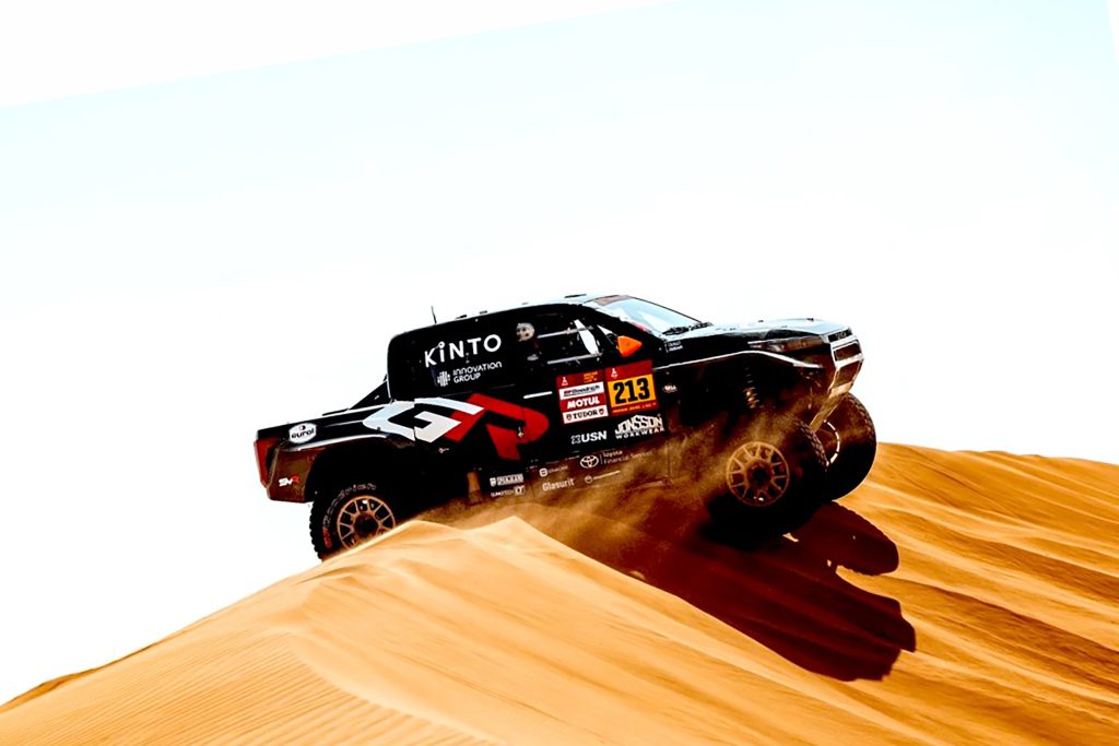 Lategan was back into the lead by the next waypoint and opened up the advantage to Loeb until Al Attiyah and then Ekstrom moved up to second on the road in defence of his second overall. The top three overall ultimately ended the day in reverse order, Lategan 28 seconds clear of Ekstrom with Attiyah third and a minute thirteen seconds off the pace. Only for the lot of them to be eclipsed by South African Champion Saood Variawa and Frenchman Francois Cazalet’s Gazoo Toyota Hilux .