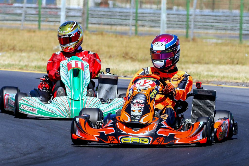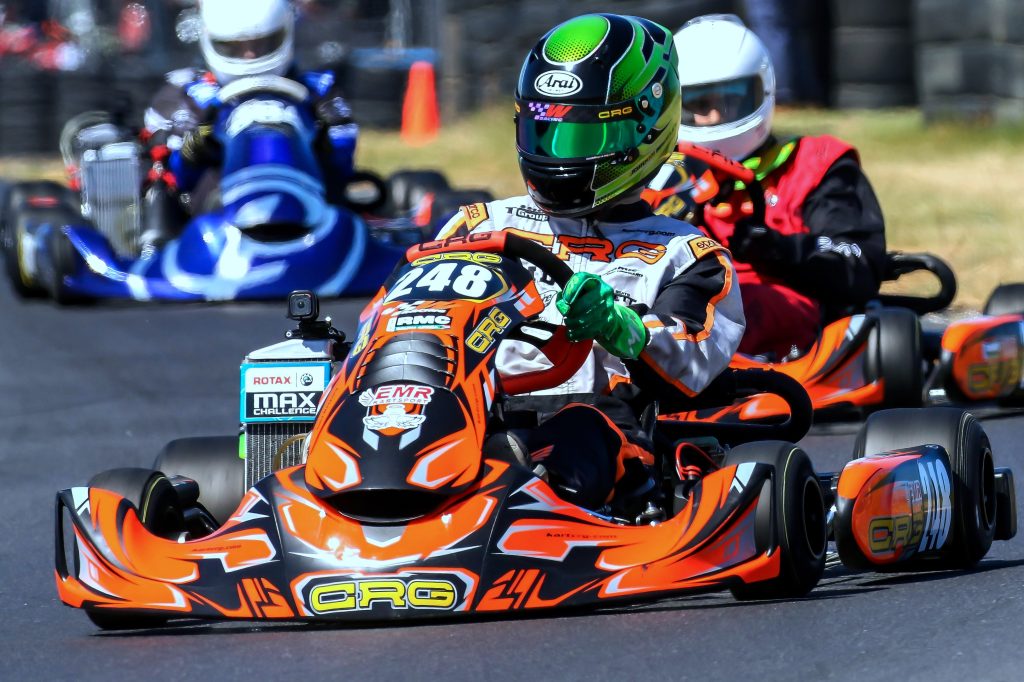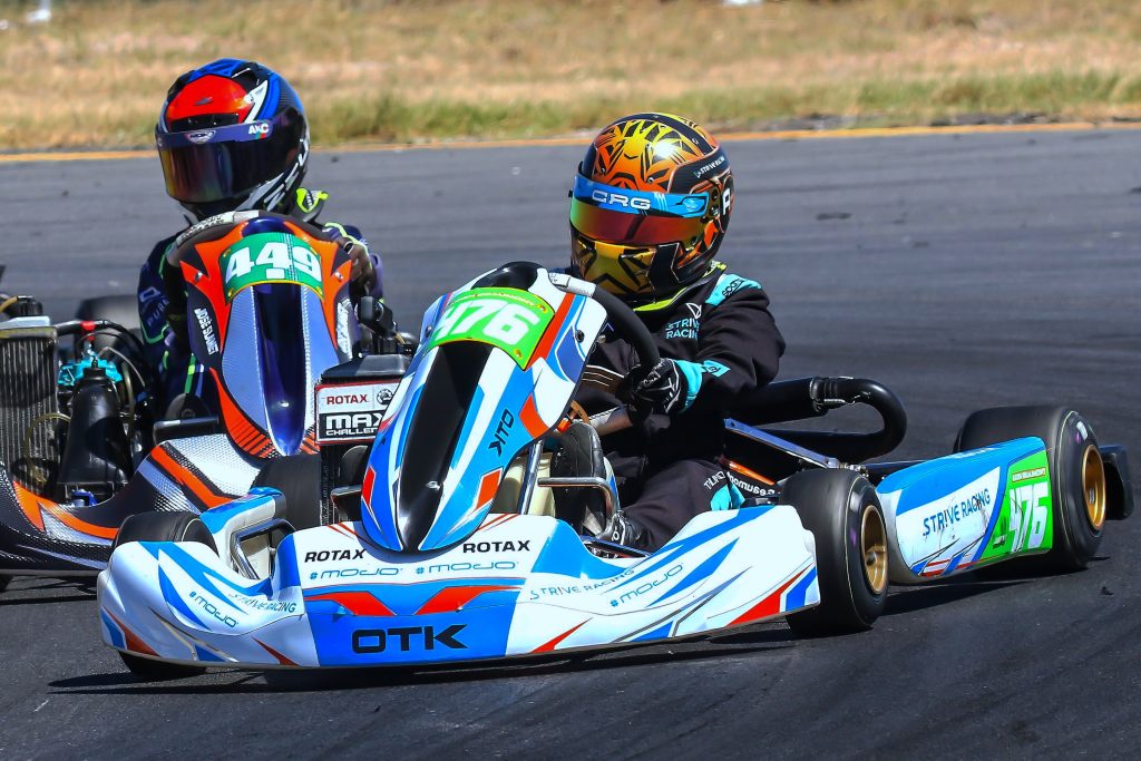 Younger brother Jordon Wadeley took open class Senior Max with a comfortable two race to one victory over Sebastiano Human, with Geo Christi, Matthew Carter, Jesse Swart, Keagan Beaumont, and Jude Stuart in chase. High school Junior Max also brought shared honours as Aiden Beaumont won the first two races before Max Boshoff took the third, with Michael Danks, Justin Milleskie, Zion Hair, and Zach McAuley next home.