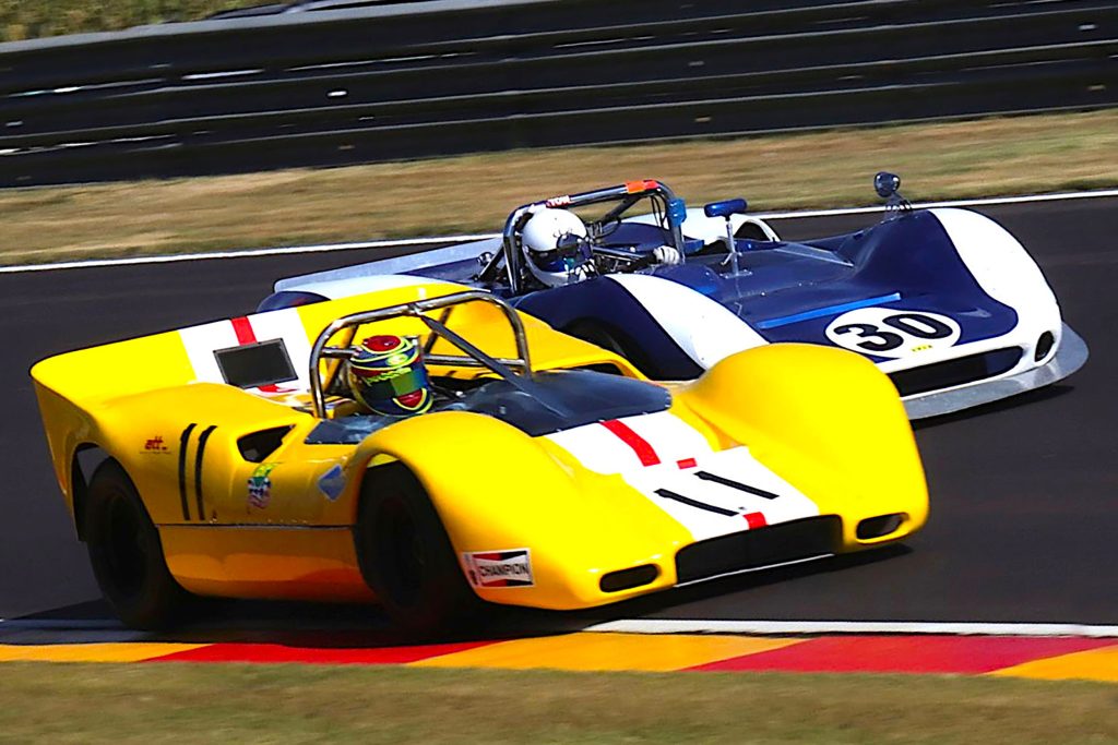 Even closer to those great original endurance races, the 45 minute Le Mans Sports & GT Tourist Trophy adds a compulsory pit stop and voluntary driver change. Headed by international entries from Janne Kling’s Ford GT40, Michiel Campagne and Frans van Maarschalkerwaard’s Daytona Cobra and Patrick Mortier driving an AC Cobra with Ryan Quan-Chai, their job will not be easy, knowing the TT winning habits of the local likes of Warren Lombard’s AC Cobra, Jonathan and Mark du Toit’s Ford GT40 and James Temple’s Daytona Cobra. Add Peter Bailey and Oliver Dalais’ Ford GT40s, Michael Kernick and Marc Miller’s Ford Daytona, Allen Meyer’s Chevron B8 and Robbie Frank in a Lotus 23B and Josh and Jake Dovey’s Ginetta G4R.
