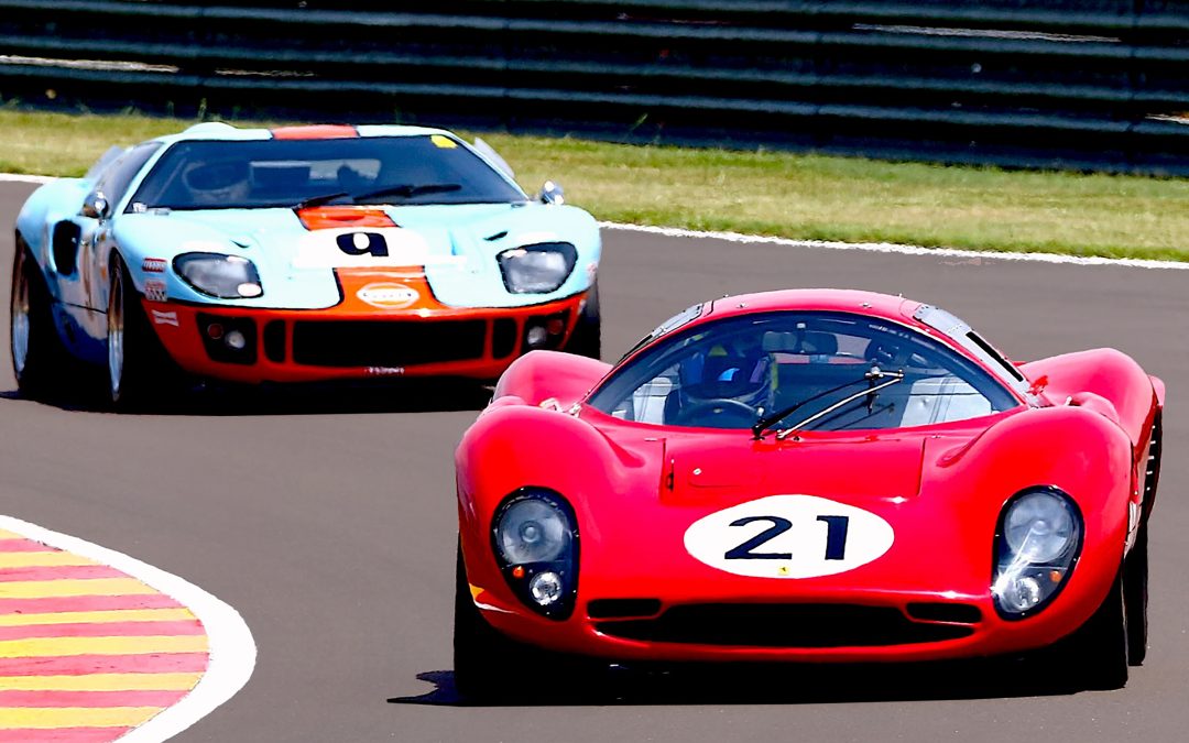 Rui Campos’ more modern Shelby Can Am proved a touch too hot for Lola T70 trio, Larry Wilford’s MK3B, Mark du Toit’s Coupe and Neil Lobb’s MK3B to handle in the first Legends of the 9 Hour Sports and GT race. Son Keegan Campos beat Andre van der Merwe’s similar Porsche 911 RSR to the GT win in fifth and sixth from Jonathan du Toit‘s Chevron B8 and Seef Fourie Jr.’s Lolette. Rui Campos went on to do the double from Wilford, Mark, and Jonathan du Toit and Fourie Jnr, GT men George Avvakoumides’s Herman Kluge Porsche RSRs and Swede Janne Kling’s genuine Ford GT40.